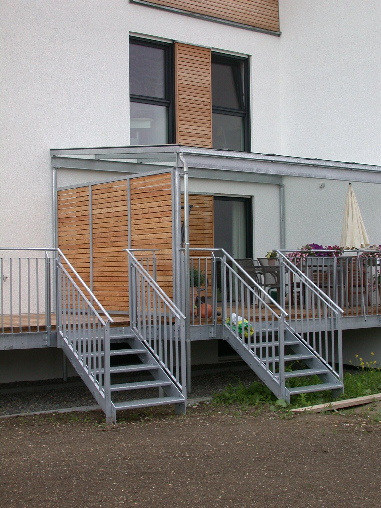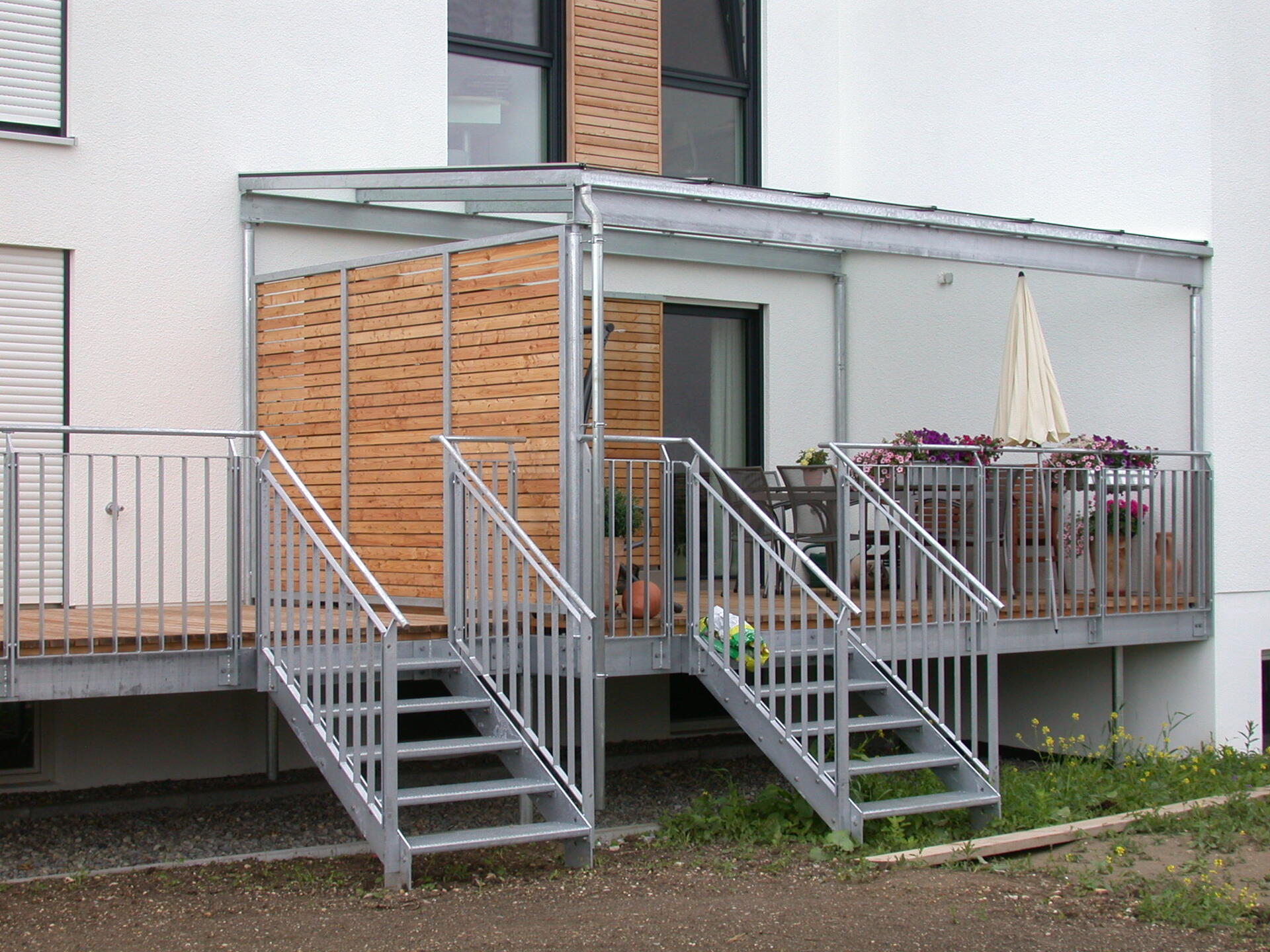 Als frei auskragende Balkone, aufgeständerte Vorsatzbalkone und Balkone in Kombination mit Laubengängen. Aufgeständerte Balkonanlagen eignen sich besonders gut für Sanierungen. Die Tragkonstruktion wird zumeist in Stahl feuerverzinkt optional feuerverzinkt und pulverbeschichtet hergestellt. Geländerfüllungen in Profilstahl, Blech, Lochblech, Streckgitter, Glas, Holz und HPL-Platten, bieten eine Vielzahl an Gestaltungsmöglichkeiten. In Kombination mit Edelstahlelementen wird jede Balkonanlage zum Eyecatcher. Als Bodenplatten stehen Stahlbeton, Stahlblech, Holzfaser-Zement-Platten sowie beschichtete Aluminiumstegplatten zur Verfügung.